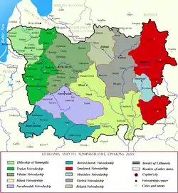 ![]() Voivodato de Smolensk en rojo. Las fronteras del voivodato no cambiaron desde la Unión de Lublin. | |||||||||||||||||||||||||||||||