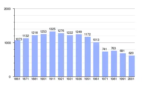 Gráfica de evolución demográfica de Volongo entre 1861 y 2001 |
