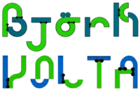 Siempre estoy en busca de palabras que tienen algún tipo de energía. Por lo general, el nombre simplemente llega, de una revista o alguien diciendo algo. Yo había esperado durante años mientras trabajaba en el álbum pero no vino. En las letras hay palabras como «tensión» y «vudú», que me pareció ser demasiado comunes de alguna modo. Siempre he tratado de elegir los títulos que están en clase de latín o algo, que no son inglés, que es un poco gracioso, porque nosotros, los europeos encontrar latinos resulta ser una especie de lenguaje neutral ... Pero encontré Volta ... No recuerdo cómo ocurrió, pero busqué en Google y encontré que es el nombre de un científico en Italia, que inventó la batería, y también un río en África, que había sido construida por hombres, y una laguna, construido por los hombres llamada Lago Volta. Así que varias partes entran en ella. Yo no voy al nombre de algo específico, las personas pueden adivinar por sí mismos lo que es. También hay un baile medieval que lleva ese nombre, un baile muy divertido que es muy difícil de aprender. Por lo tanto, tengo un montón de cosas en una palabra: un baile, un río en África, que ya no funciona, y la batería. Así que está bien - esto encaja.Björk