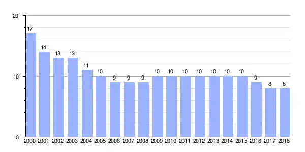 Gráfica de evolución demográfica de Volteiro entre 2000 y 2018 |