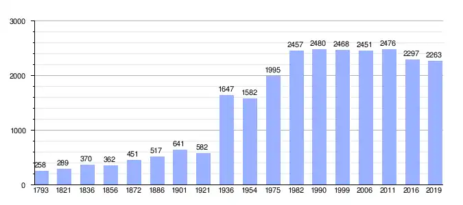 Gráfica de evolución de Vouël entre 1793 y 2019 |