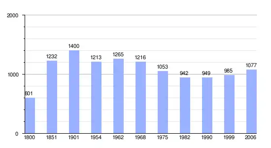 Gráfica de evolución demográfica de Voulmentin entre 1800 y 2006 |