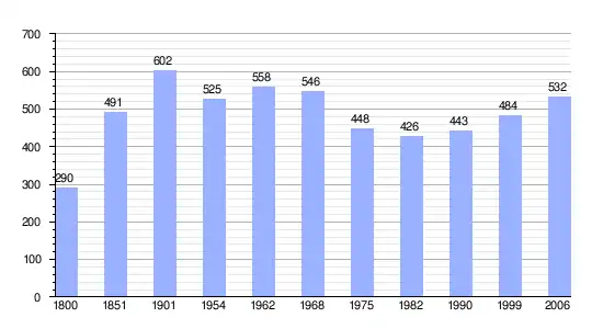 Los datos demográficos contemplados en este gráfico de la comuna de Voultegon[4] se han cogido de 1800 a 1999 de la página francesa EHESS/Cassini, y los demás datos de la página del INSEE.[5]
