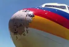 Causa | Apagado simultáneo de los dos motores debido al mal tiempo seguido de un aterrizaje de emergencia | |