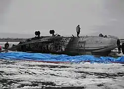 ![]() Restos del avión después del accidente. | ||