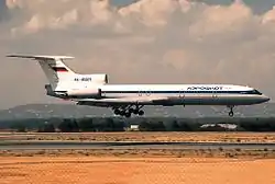 ![]() Un Tupolev Tu-154B-2, similar al involucrado en el accidente, en 1996. | ||