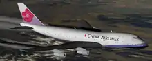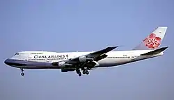 ![]() El 747 de China Airlines involucrado en el accidente, a punto de aterrizar en el Aeropuerto Internacional de Taiwán Taoyuan en 2001. | ||