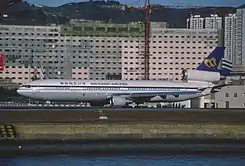 La aeronave, un McDonnell Douglas MD-11 (registro B-150), portaba todavía la librea de Mandarin Airlines de su tiempo de servicios con esta operadora. Mientras aterrizaba durante un tifón, realizó una toma dura, se volcó e incendió. De las 315 personas a bordo, 312 sobrevivieron y tres fallecieron.[2] Fue el primer accidente con muertos que tuvo lugar en el aeropuerto internacional de Hong Kong desde su inauguración en 1998.[3]