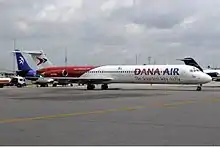 El avión se trata de un MD-83 bimotor, con registro en Nigeria como 5N-RAM. Había formado parte de la flota de Alaska Airlines (N944AS)[7] tras su construcción en 1990 antes de ser adquirido por Dana Air en febrero de 2009.[8] La aeronave acumulaba 60.846 horas de vuelo desde su construcción.[2] Los motores izquierdo y derecho tenían 54.322 y 26.025 horas de vuelo total respectivamente. El último mantenimiento del avión había tenido lugar el 1 de junio de 2012, dos días antes del accidente.[2]