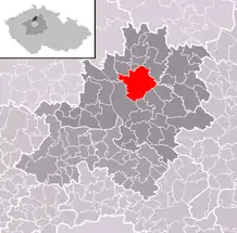 Se encuentra ubicada al norte de la región y de Praga, cerca de la confluencia de los ríos Elba y Moldava, y de la frontera con las regiones de Ústí nad Labem y Liberec.[1]