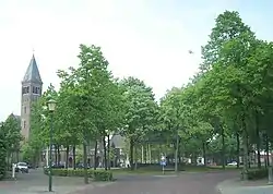 ![]() Waalre: plaza del mercado con la nueva iglesia de San Willibrord | ||||
