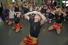 Wai Khru Ram Muay ( Thai: ไหว้ครูรำมวย, RTGS : wai khru ram muai, IPA: [wâːj kʰrūː rām mūɛj] ) es un ritual realizado por los nak muay, los practicantes de muay thai, antes de luchar. Conocido por diferentes nombres, también existe en muay Lao de Laos, en el prodal de Camboya, y en el tomoi de Malasia. Consiste en dos partes: el wai khru y el ram muay. El wai es un saludo tailandés tradicional con las palmas juntas como una señal de respeto. Khru es la forma tailandesa de la palabra sánscrita gurú que significa maestro. Ram es la palabra tailandesa para bailar en estilo clásico, y muay significa boxeo o arte marcial. Por lo tanto, el término completo puede traducirse como "baile de guerra que saluda al maestro", pero los tailandeses generalmente lo acortan a wai khru o ram muay. El ram muay muestra respeto y gratitud al maestro del boxeador, sus padres, y a sus antepasados. Cuando los boxeadores luchaban delante de la realeza, el ram muay también era una muestra de respeto al rey.