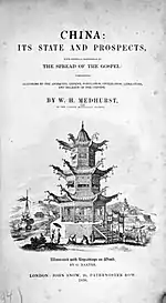 - Medhurst, W. H. [Walter Henry 1823- 1876 - son of Walter Henry the subject of this article] (1873). The Foreigner in far Cathay. New York: Scribner, Armstrong and company. OCLC 1738495.