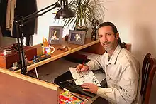 En 1989 un viejo profesor de su escuela técnica, Víctor Hugo Bustos, le presentó al que sería su primer mentor en el mundo profesional del cómic: Santiago Scalabroni, reconocido creador de Disney.[2]