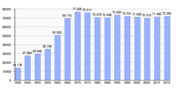 Gráfica de evolución demográfica de Warabi entre 1940 y 2015 |