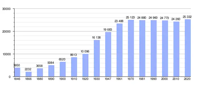 El 1 de enero de 2018 tenía una población de 25.184 habitantes. Área total de 12,93 km², densidad de población de 1.948 habitantes por km².