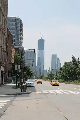 La autopista empieza en Battery Park cerca a la entrada del Túnel Brooklyn Battery donde también recibe tráfico del extremo sur de la Franklin D. Roosevelt East River Drive. Desde ahí, la vía pasa colindante con el sitio del World Trade Center en Vesey Street. Continúa con este nombre pasando por numerosos embarcaderos a lo largo del río Hudson hasta Gansevoort Street en el Meatpacking District donde se convierte en la Undécima Avenida.