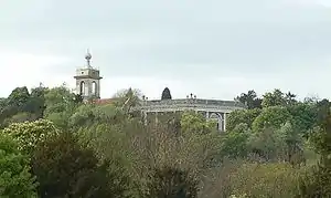 Las estructuras posteriores que rompen el tema clásico incluyen el cobertizo para botes de estilo gótico, una alcoba gótica, ahora una ruina romántica escondida entre la maleza, y una capilla gótica, que una vez fue el hogar del zapatero del pueblo (y graciosamente llamado San Crispín)[40] pero luego se usó las perreras de la finca.[41] Un monumento dedicado a la reina Isabel II fue erigido en su 60 cumpleaños en 1986.[42]