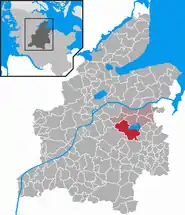 Se encuentra ubicado en el área centro-este del estado, cerca de las ciudades independientes de Schleswig y Kiel, de la costa del mar Báltico y del canal de Kiel.