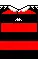 • Uniforme titular: Camiseta roja y negra a rayas horizontales, pantalón blanco, medias negras.