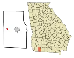 ![]() Ubicación en el condado de Grady en el estado de Georgia ![]() Ubicación de Whigham | ||
