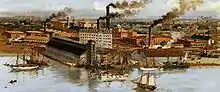 Gooderham and Worts comenzó a producir whisky en 1837 en Toronto como un negocio paralelo a su molienda de trigo, pero superó la producción de Molson en la década de 1850 cuando expandió sus operaciones con una nueva destilería en lo que se convertiría en el Distillery District. Henry Corby comenzó a destilar whisky como un negocio secundario de su molino en 1859 en lo que se conoció como Corbyville y Joseph Seagram comenzó a trabajar en su padre- molino de harina y destilería Waterloo de su suegro en 1864, que eventualmente compraría en 1883. Mientras tanto, los estadounidenses Hiram Walker y J.P. Wiser se mudó a Canadá: Walker a Windsor en 1858 para abrir un molino de harina y una destilería y Wiser a Prescott en 1857 para trabajar en la destilería de su tío donde presentó un whisky de centeno y tuvo el éxito suficiente para comprar la destilería cinco años después. La interrupción de la Guerra Civil Estadounidense creó una oportunidad de exportación para los whiskies canadienses y su calidad, en particular los de Walker y Wiser, que ya habían comenzado la práctica de añejar sus whiskies, sostuvo ese mercado incluso después de que se aplicaran los aranceles de la posguerra. introducido.[11] En la década de 1880, la Política Nacional de Canadá impuso aranceles altos a los productos alcohólicos extranjeros cuando el whisky comenzó a venderse en botellas y el gobierno federal instituyó un programa embotellado en bonos que brindaba certificación del tiempo que un whisky pasaba envejeciendo. y permitió el aplazamiento de impuestos para ese período, lo que fomentó el envejecimiento. En 1890, Canadá se convirtió en el primer país en promulgar una ley de envejecimiento para los whiskies, que exige que se envejezcan al menos dos años. El creciente movimiento por la templanza culminó con la prohibición en 1916 y las destilerías tuvieron que especializarse en el mercado de exportación o cambiar a productos alternativos, como alcoholes industriales que tenían demanda en apoyo del esfuerzo de guerra.[12][13]