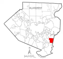 ![]() Ubicación en el condado de Allegheny ![]() Ubicación del condado en Pensilvania ![]() Ubicación de Pensilvania en EE. UU. | ||