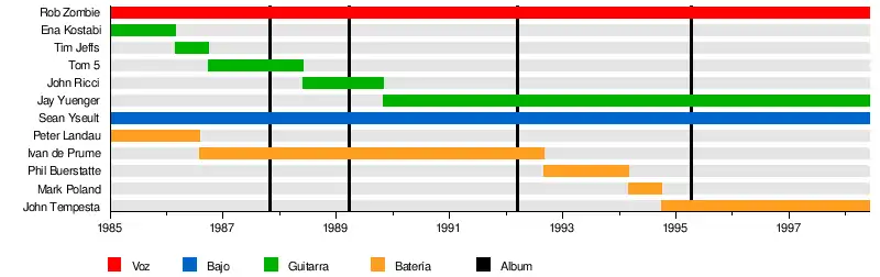 - Rob Zombie (Robert Cummings) – voz (1985–1998)
