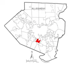 ![]() Ubicación en el condado de Allegheny ![]() Ubicación del condado en Pensilvania ![]() Ubicación de Pensilvania en EE. UU. | ||