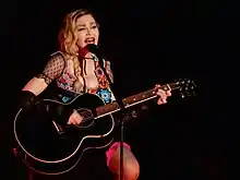 El espectáculo incluía siete cambios de vestuario, con rutinas teatrales de baile y canto, y un encore donde interpretaba «Who's That Girl» y «Holiday» (1983);[96] también, abordaba temáticas sociales como el VIH/sida durante «Papa Don't Preach».[97] En términos generales, recibió la apreciación de los críticos, quienes resaltaron la naturaleza extravagante del concierto y elogiaron a Madonna por sus bailes, vestuarios y su dinamismo.[98][99][100][101] En total, Who's That Girl World Tour recaudó más de 25 millones USD,[93] con una audiencia estimada en más de 1,5 millones de personas; según Pollstar, fue la segunda gira más exitosa de una solista en 1987, detrás de Break Every Rule Tour de Tina Turner.[4][102] Los boletos para los dos primeros conciertos en el estadio de Wembley de Londres se agotaron en dieciocho horas, lo que condujo a los organizadores agregar una fecha más.[101] Más de 70 000 personas asistieron al primer espectáculo de esa ciudad, mientras que 130 000 presenciaron el de Sceaux, en París, lo que significó la mayor cifra registrada en un festival de este tipo.[101][103] Para el lanzamiento del VHS Ciao Italia: Live from Italy, se filmaron los shows de Turín y Florencia, en Italia.[104][105] Taraborrelli comentó que «muchas artistas se comportan como una diva por un tiempo cuando alcanzan el estatus de superestrella, y Who's That Girl? World Tour marcó el inicio de la etapa de Madonna».[106] La gira es notable por la presentación de una nueva personalidad suya, una imagen sexual más inteligente y fuerte que la anterior que había llevado al surgimiento de las Madonna wannabe.[107] En el centro de la ciudad de Pacentro, donde sus antepasados solían vivir, se erigió una estatua de ella vistiendo un sostén cónico en su nombre.[108]