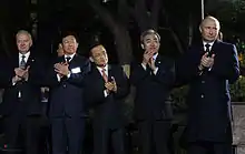 ![]() de derecha: Vladímir Putin, en:Yoo Jin-ryong, embajador a Rusia Wi Sung-lac, CEO Lotte Grupo en:Akio Shigemitsu y embajador ruso a Corea ru:Внуков, Константин Васильевич celebrar la inauguración de una nueva estatua de Alexander Pushkin en Seúl el 13 de noviembre de 2013 | ||