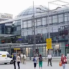 Al sur, la plaza limita con un lateral (de 230 metros) de la Hauptbahnhof. Otros edificios significativos de la plaza son la Prager Spitze (centro comercial acristalado con planta en forma de flecha) y el Kugelhaus (dos bloques cúbicos unidos por una enorme esfera de cristal).