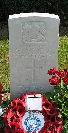 El 4 de noviembre de 1918, irónicamente justo una semana antes de que acabara la guerra, Owen cayó abatido durante el cruce del canal Sambre-Oise. Su madre recibió un telegrama que le informaba de su muerte el Día del Armisticio. Actualmente, Wilfred Owen se encuentra enterrado en el Cementerio Comunal de Ors y algunos de sus poemas fueron musicados por el compositor Benjamin Britten en su obra Réquiem de Guerra.[2]