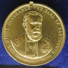 ![]() Legge en una medalla en cuyo reverso se puede leer "Para conmemorar la apertuta el 3 de junio de 1878 del Dartmouth Park, el regalo del duque de Dartmouth a los habitantes de West Bromwich" | ||