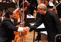 ![]() William Molina junto al Director de Orquesta Eduardo Marturet durante el concierto Oblivion en el Teatro Teresa Carreño en 2009. | ||