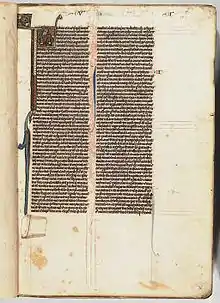 - Una Biblia cuyos fragmentos sobrevivientes están dispersos entre varias colecciones: la porción principal sobreviviente (155 folios) es Lewis Ms E 29 en la Biblioteca Libre de Filadelfia, 182 x 113 mm, con muchas iniciales historiadas. [15] Catorce hojas de este manuscrito se encuentran ahora en la Biblioteca Lilly de la Universidad de Indiana como Ricketts C: 1 (1 hoja), Ricketts III: 25 (1 hoja) y Ricketts III: 53 (12 hojas). Otras hojas de este mismo manuscrito se encuentran dispersas en colecciones privadas en Inglaterra.