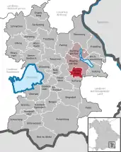 Está ubicado al sureste del estado, en la región de Alta Baviera, en la ladera de los Alpes, cerca de la orilla del lago Chiem y de la frontera con Austria.
