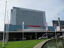 El Centro de Congresos de los Países Bajos era uno de los edificios más modernos en los años 60. La pared exterior junto a la entrada está decorada con una obra de arte de cerámica del neerlandés Karel Appel.