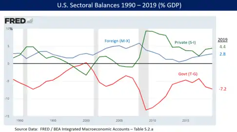 El economista Martin Wolf dio crédito al marco analítico de "balances financieros sectoriales" de Godley en un análisis de 2012 de la Gran Recesión. Wolf explicó: "La idea esencial es que dado que el ingreso tiene que ser igual al gasto de la economía en su conjunto (que es lo mismo que decir que el ahorro es igual a la inversión), las sumas de la diferencia entre los ingresos y los gastos de cada uno de los sectores de la economía también deben ser cero. Estas diferencias también pueden describirse como "balances financieros". Por lo tanto, si un sector gasta menos que su ingreso debe acumular compras (netas) en otros sectores. El punto crucial es que, dado que los saldos sectoriales deben sumar cero, un aumento en el déficit de un sector debe ir acompañado de un cambio compensatorio en los demás. De ahí se sigue que si el déficit fiscal aumenta, la suma de los excedentes de los otros sectores de la economía debe aumentar de manera precisamente compensada ". Wolf explicó que un gran aumento en el balance financiero del sector privado provocó un gran aumento en los déficits gubernamentales.[6]