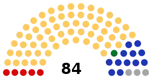 Gobierno: (64) 56 Nuevas Ideas[1] 5 GANA 2 PCN 1 PDC Oposición (20) 11 ARENA 4 FMLN 3 Independiente 1 Nuestro Tiempo 1 VAMOS | ||||