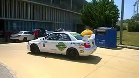 ![]() La montura del ganador del rally durante el parc fermé en el Estadio de los Juegos Mediterráneos | |||||