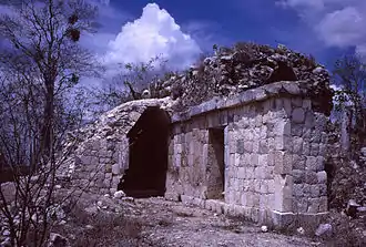 Sobre una colina cercana a las edificaciones principales se desplanta una estructura de tres habitaciones abovedadas conocida como el Edificio sobre la colina del noroeste. Todas las estructuras del sitio representan un buen ejemplo de la llamada arquitectura Puuc.