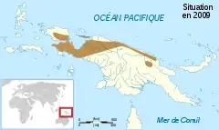 Se encuentra en Nueva Guinea Occidental (Indonesia) y Papúa Nueva Guinea.