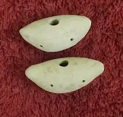 El instrumento tiene forma de media luna. Se cree que inicialmente los instrumentos de este tipo se desarrollaron a partir de las cáscaras duras de frutas como el coco, y luego se hicieron formas similares con arcilla de alfarero. Estos instrumentos imitan los sonidos de los animales y los pájaros y producen un sonido similar al de una flauta. En la antigua China, un instrumento similar se llamaba Xun.