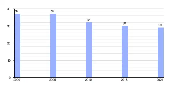 Gráfica de evolución demográfica de Xuvencos (parroquia) entre 2000 y 2021 |