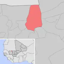 Se encuentra ubicada al oeste del país y al noreste de la región de Kayes, en la zona climática del Sahel, cerca de la frontera con Mauritania y la región de Kulikoró.