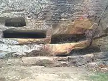 No se conservan los restos del edificio, pero en la roca se pueden observar las improntas que dejan ver que la iglesia presentaba una sencilla planta rectangular. Para acceder a esta se conserva en la roca una escalinata de ocho escalones.