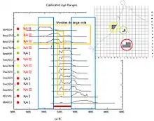 Con base en esta información se pudo establecer una cronología relativa de los acontecimientos. Dataciones de materia orgánica por el método de radiocarbono (C14) y por medio de AMS analizadas permitieron hacer unas estimaciones más precisas de los intervalos cronológicos en la Draga. Entre el intervalo más antiguo, conocido como fase I, con una estimación 5320-4980 cal ANE y el más reciente, fase II, con 5210-4800 cal ANE se encontraron una serie de intervalos sin interrupción significativa que puedan hacer pensar en algún momento de abandono del poblado.[14][15]