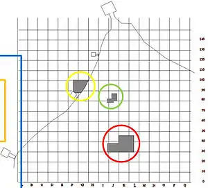 - Construcciones de forma cuadrangular; el patrón de disposición no es típico de estructura circular.