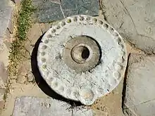 En otra zona se ha hallado lo que se supone que es un depósito fundacional del primer palacio fechado en torno al minoico antiguo III- minoico medio I, consistente en un especie de cajón de lajas de que contenía un vaso cerámico.